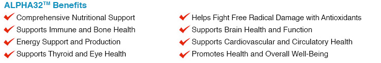 The ALPHA32® advanced formula was developed by the Medix Select Medical Advisory Board and renowned physicians: Dr. Russell Blaylock, Dr. David Brownstein, Dr. Chauncey Crandall, and Dr. Erika Schwartz. Alpha32 is a high-quality antioxidant-based, daily multivitamin formula containing the 32 most essential vitamins and other critical nutrients needed for optimal health and wellness.